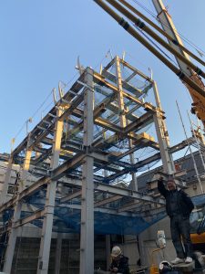 港区 831t 鉄骨建方・本締め・デッキ工事